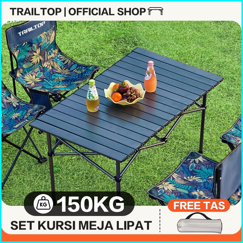 Trailtop Paket Kursi Meja Lipat Outdoor Portable Kursi Lipat 1 Set