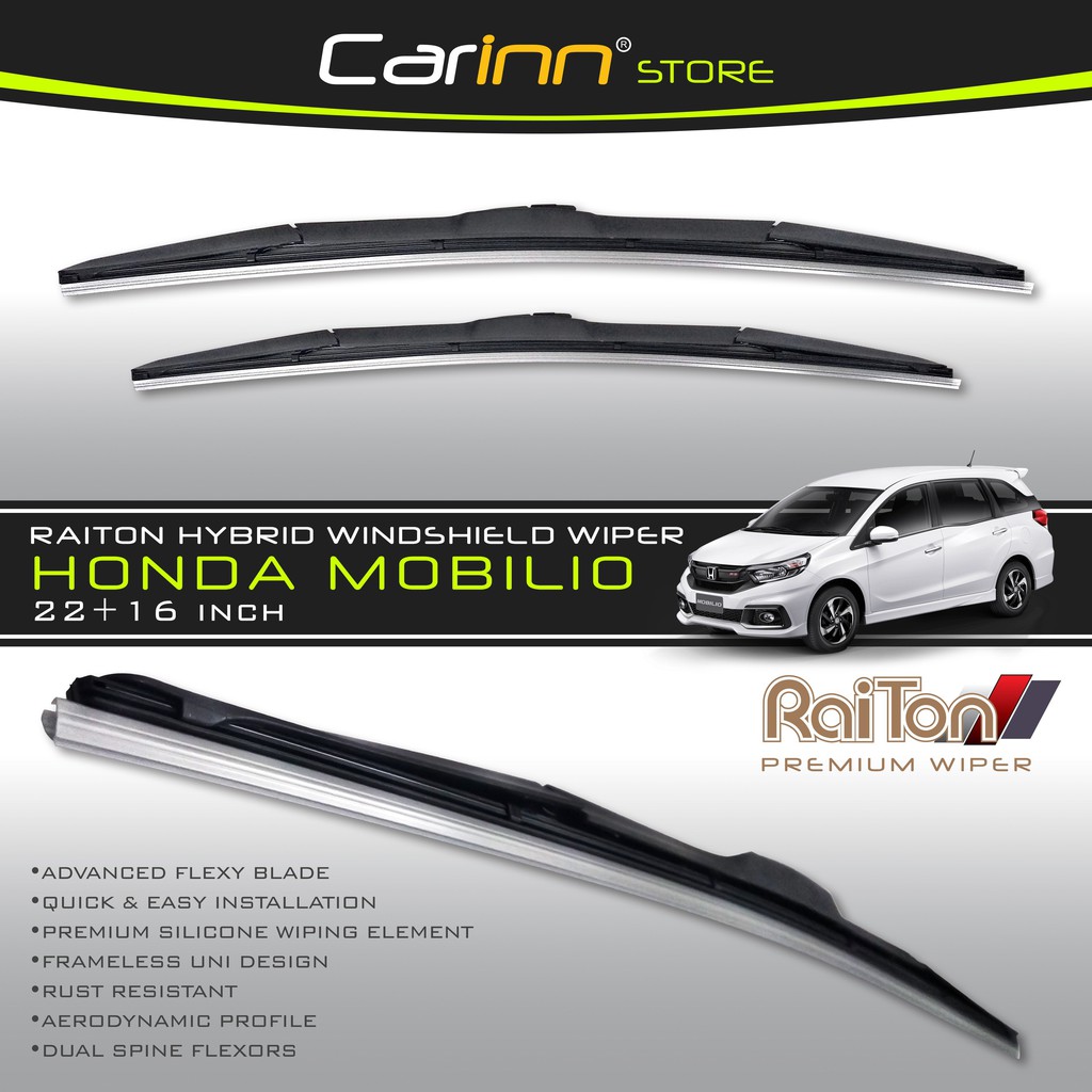Raiton Sepasang Wiper Hybrid Kaca Depan Mobil Honda Mobilio 22" & 16" -2 Pcs Original