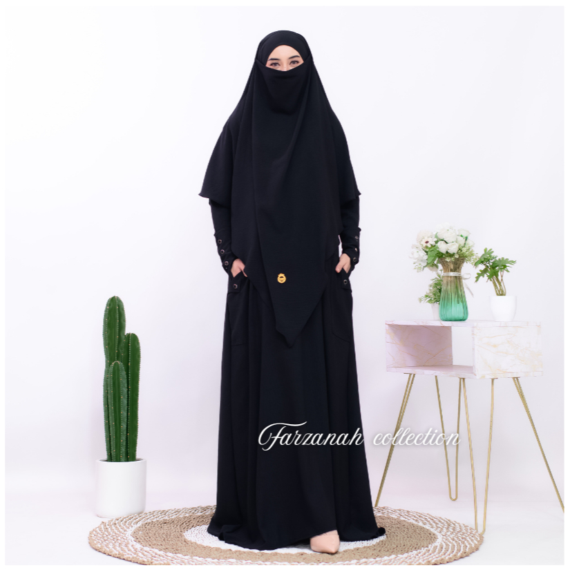 gamis abaya haviza set french khimar abaya muslimah umroh haji terbaru crinkle mewah variasi kancing