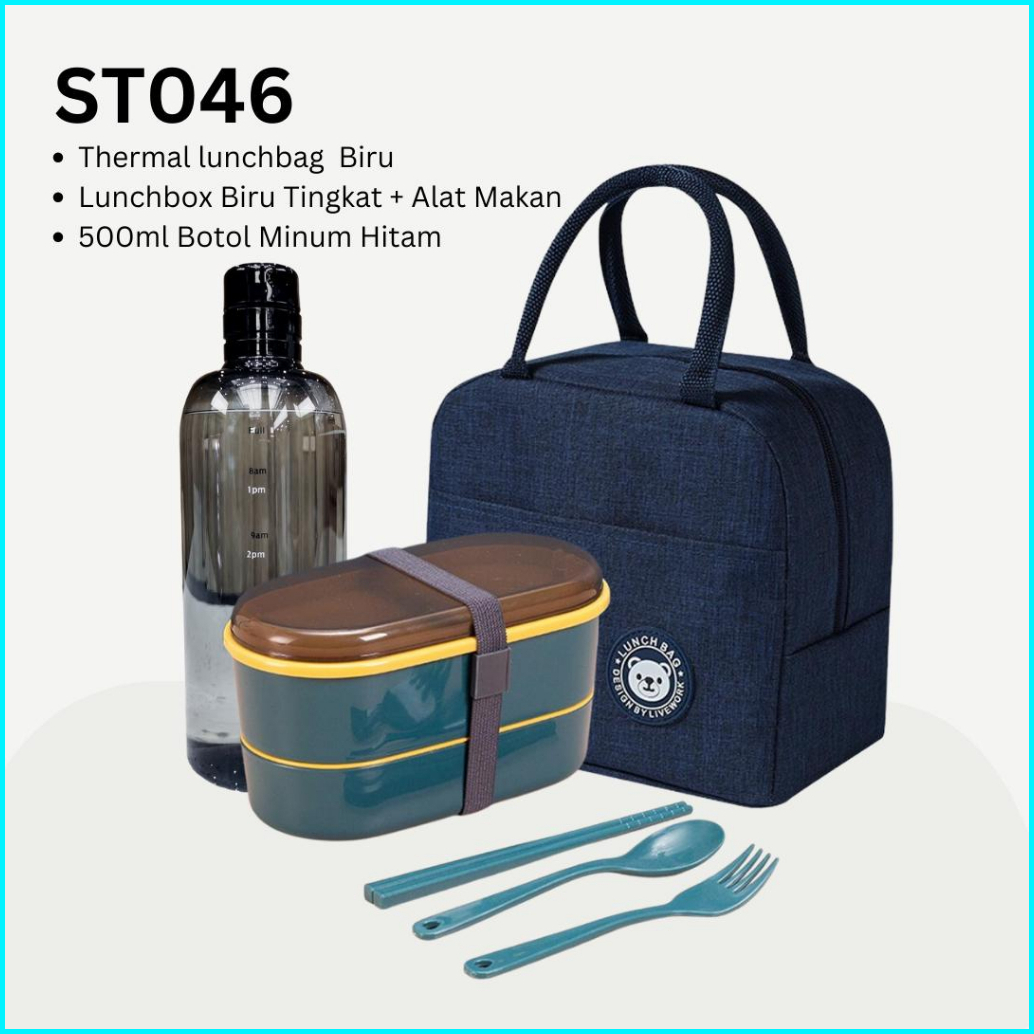 Set Kotak Makan Rantang Tingkat Layer Tas Lunchbag Thermal Tahan Panas Lunchbox Botol Monum Kitchenware