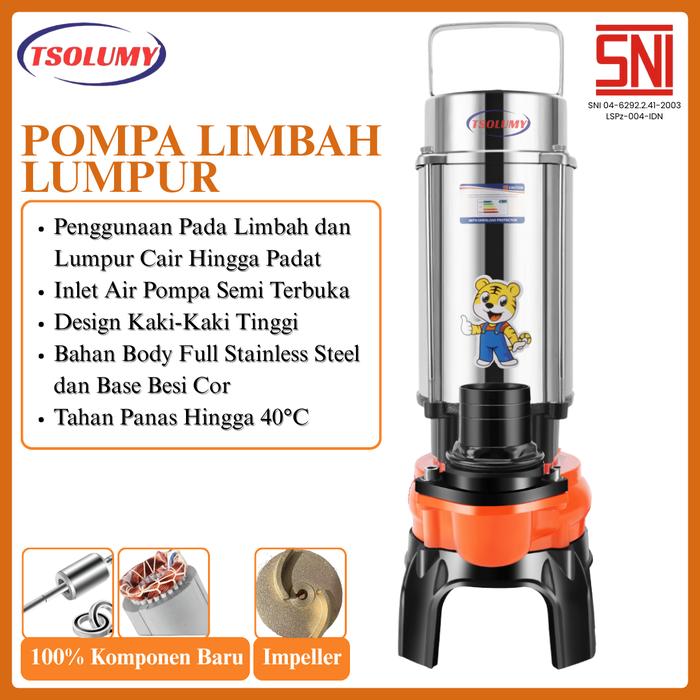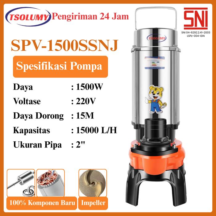 Tsolumy Pompa Celup Air Kotor SPV 1500SSNJ Sewage Pump 2 inch Pompa Limbah Pompa Lumpur Kental Sedang