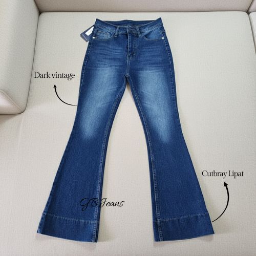 Goodbest jeans - Jennie-HighWaist Cutbray Jeans Celana Flare Panjang Stretch Wanita Retro Vintage Lipat Bawah