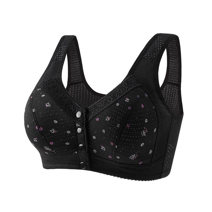 BRA WANITA BIG SIZE ELEGAN MOTIF BUNGA BH JUMBO RENDA KANCING DEPAN SUPPORT PENUH BAHAN LEMBUT DAN NYAMAN - HITAM, 38