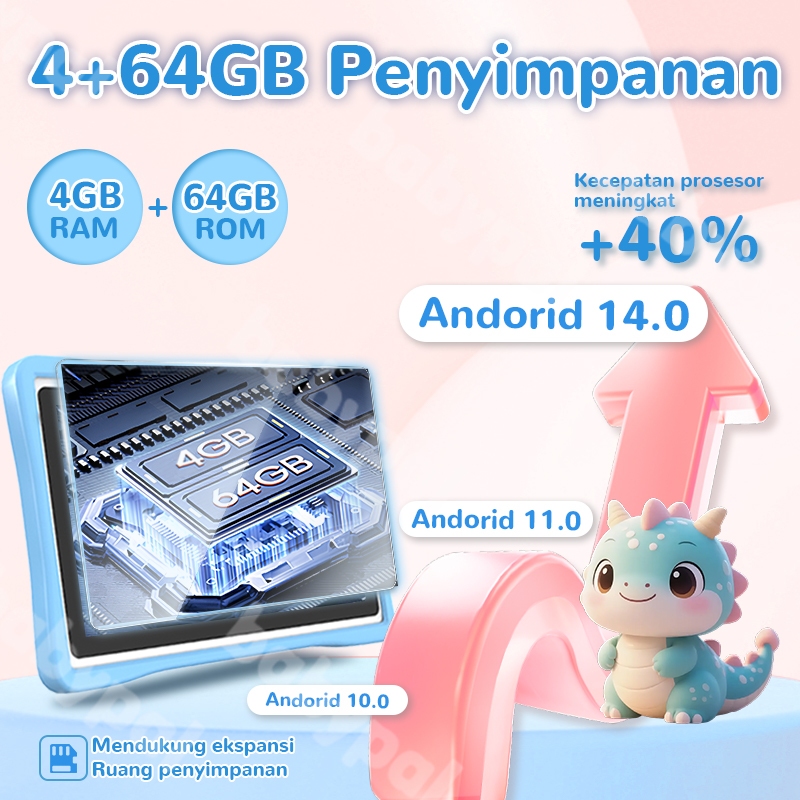Tablet Anak 7 Inch Android 14|RAM 4GB+ROM 64GB|Baterai 3200mAh Tahan 5 Jam|Kontrol Orang Tua IWawa|Babypal-B09