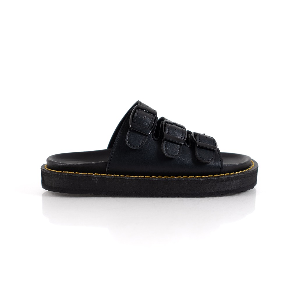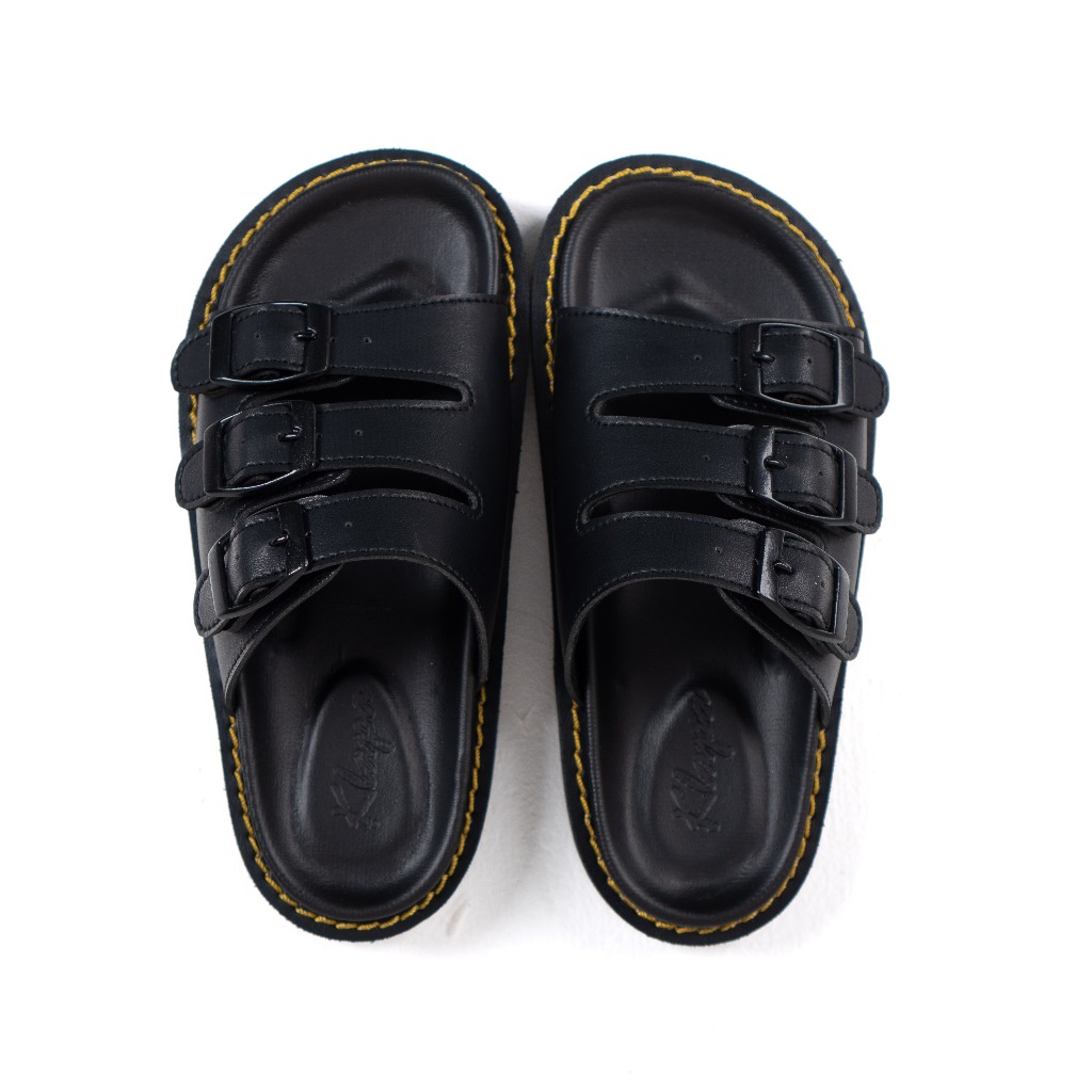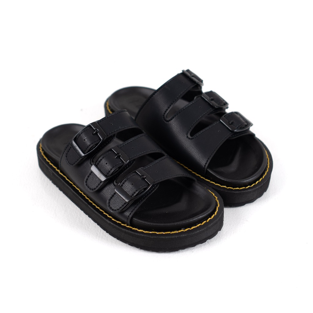 Klapa Kids - Sandal Kulit Anak Laki Perempuan Cowok Cewek Unisex 2-8 Tahun - Kotaro Series Full Black Fashion