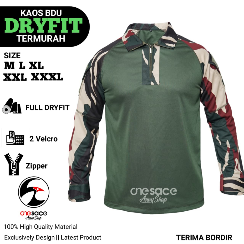 Kaos Loreng BDU Dryfit Tactical Jersey Kombinasi Terbaru Lengan PanjangKaos TNI Bahan Premium