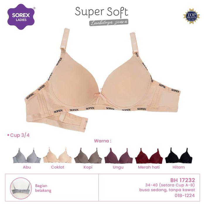 SOREX 17232 BRA BUSA TIPIS TANPA KAWAT (1PCS) BH WANITA CANTIK LEMBUT NYAMAN - HITAM, 34