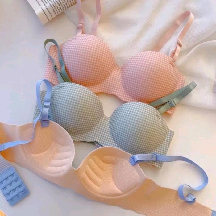 [1 SET 6 WARNA] BH BRA WANITA MOTIF KOTAK TANPA KAWAT PUSH UP BUSA TEBAL BRA SPORT YOGA HIGH QUALITY CANTIK MURAH FS - 1