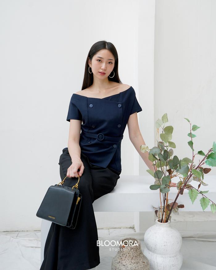 [ BLOOMORA ] - VICTasliA T0P / T0P ATASAN WANITA | ATASAN CASUAL & FORMAL WANITA | SABRINA - BLACK, M