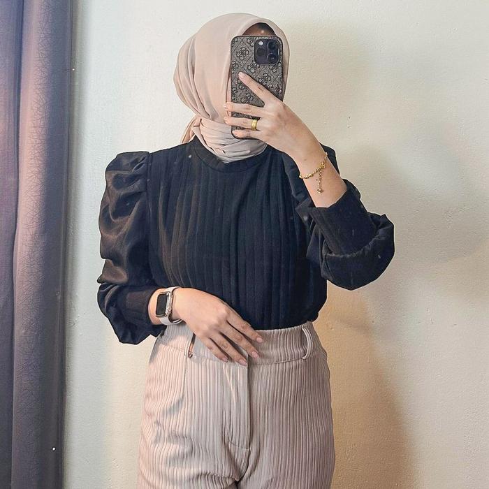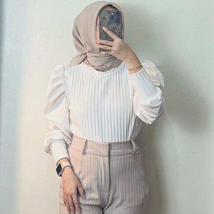 RASHA BLOUSE - ATASAN BLOUSE WANITA LENGAN PUFFY SHAKILLA BAHAN HORNET MELAR WANITA OUTFIT BOUTIQUE - PUTIH, STANDAR