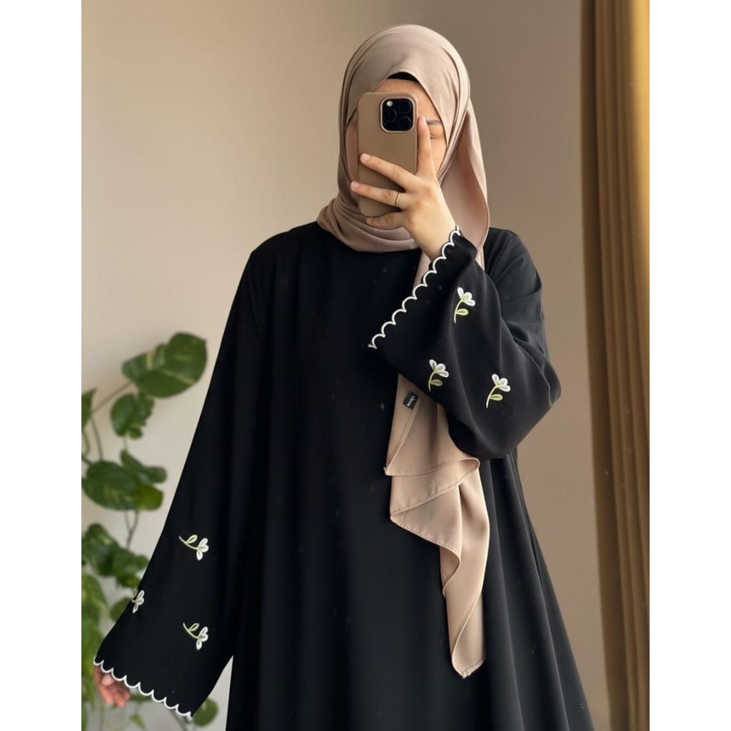 Abaya Hitam Mewah Elegan Noura Abaya Wolpech Premium Mix Bordir Bunga Abaya Wanita Muslim Terbaru