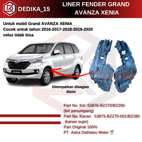 Liner Fender Spakbor Depan Grand Avanza Xenia 2016 2017 2018 2019 2020