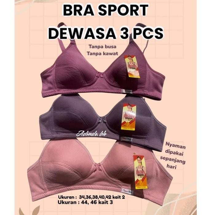 ISI (3/6/10)PCS SPORT BRA DEWASA TANPA BUSA TANPA KAWAT BAHAN KATUN KAIT 3/KAIT 2 - ISI 3, 34 (KAIT 2)