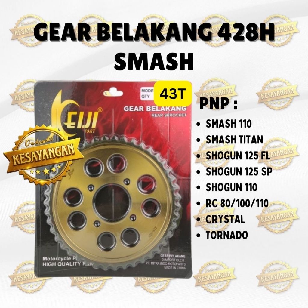 GEAR BELAKANG 428H KEIJI 30T43T SUZUKI SMASH LAMA 110 NEW R SR TITAN SHOGUN 110 KEBO NEW R SHOGUN 125 OLD NEW R SP FL