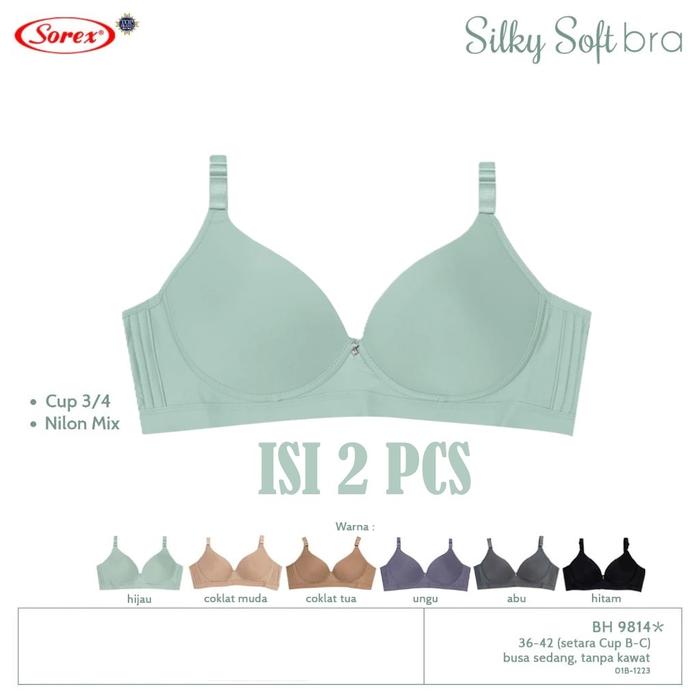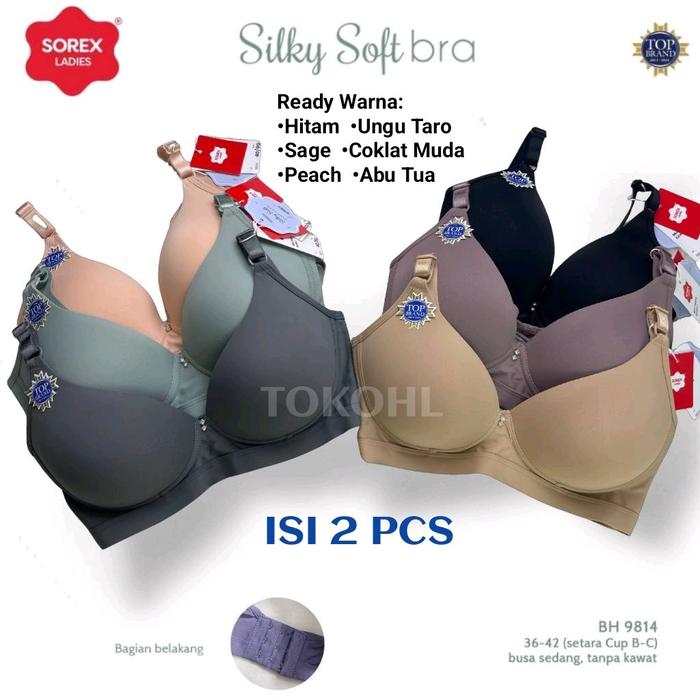 ISI 2 PCS BH SOREX 9814 SILKY SOFT BUSA TANPA KAWAT BRA SETARA CUP B-C KAIT 3 - SIZE 36, ISI 2 PCS