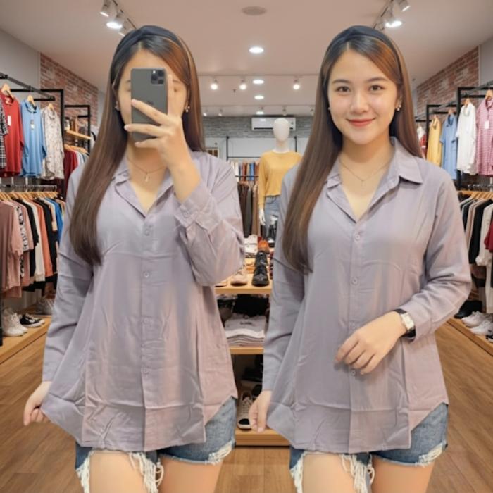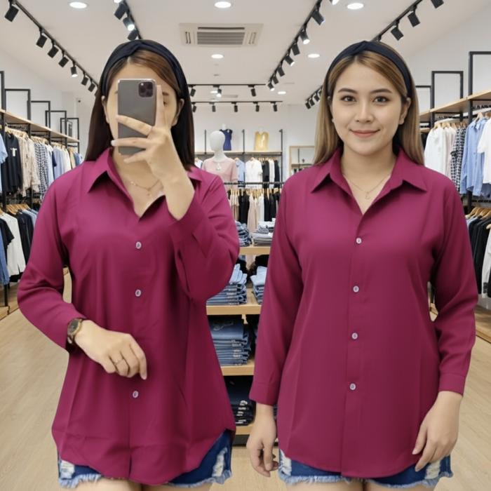 KEMEJA WANITA POLOS KATUN POLY PREMIUM OVERSIZE SANTAI ATASAN PANJANG BAJU CEWEK BASIC HITAM CASUAL DEWASA NYAMAN LEMBUT