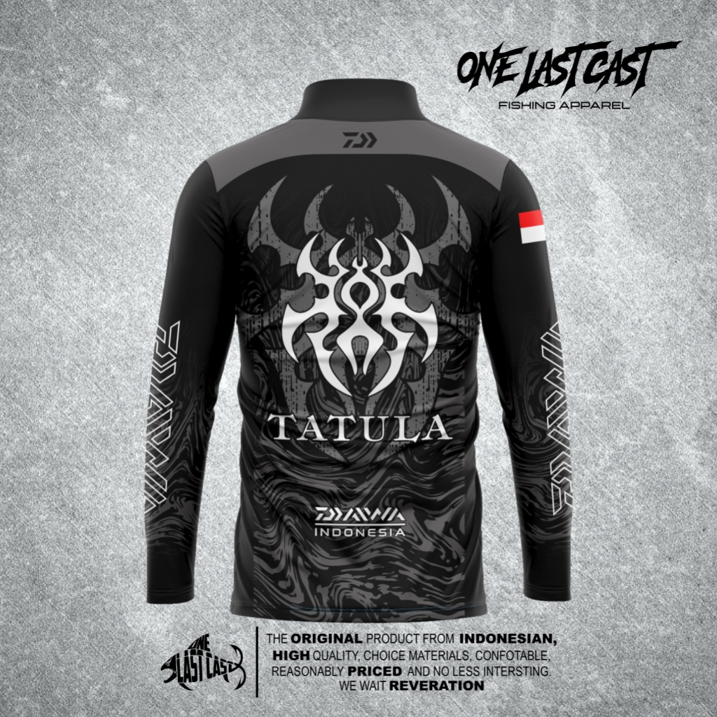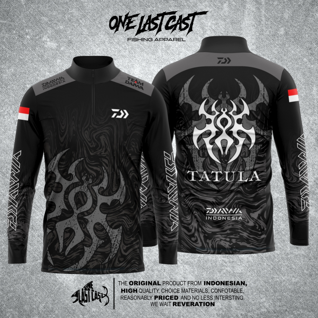 ONELASTCAST JERSEY MANCING MODEL KERAH BERDIRI ZIPPER DAIWA TATULA BLACK DAIWA INDONESIA FULL PRINT