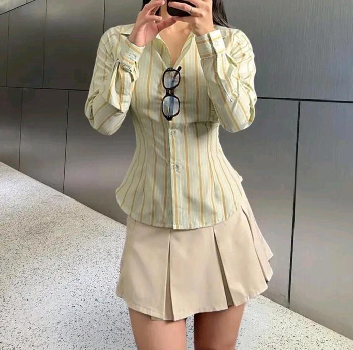 MZ - FITTED SHIRT | KEMEJA KERJA WANITA SLIM FIT GARIS STRIPE KARET LEMBUT ADEM DAN NYAMAN - PINK, UKURAN L