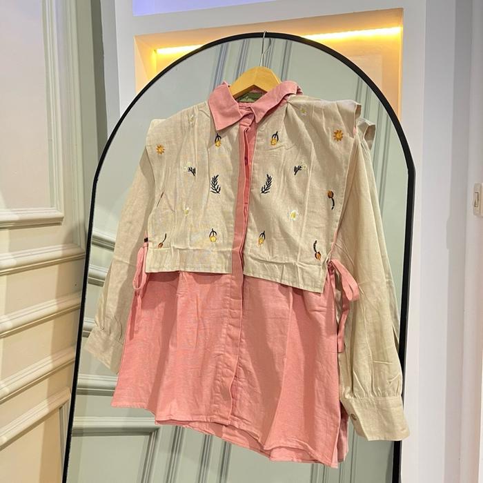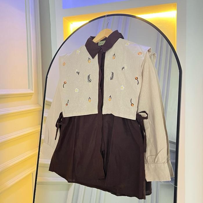 ALIKA SHRIT - KEMEJA BORDIR LINEN / KEMEJA VEST IKAT BORDIR WANITA PREMIUM NYAMAN ATASAN PANJANG MEWAH OVERSIZE - MARON