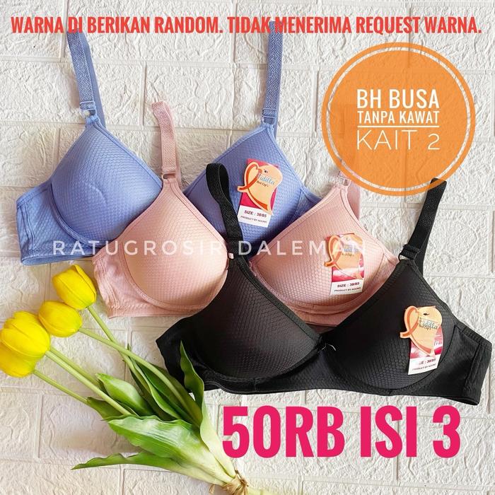 PAKET PROMO 50RB ISI 3 BH BUSA TANPA KAWAT FIDILLA SIZE 34-42 KAIT 2 BRA WANITA REMAJA DEWASA BUSA TIPIS - ISI 3, 34