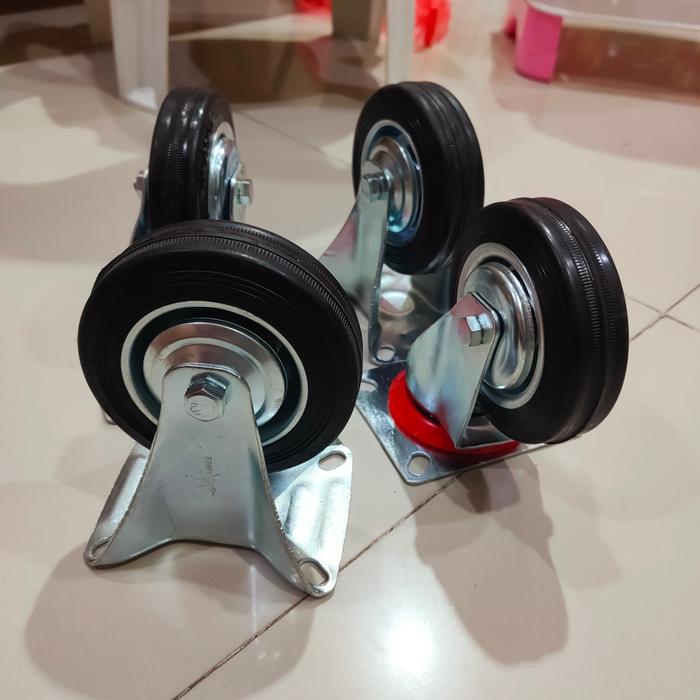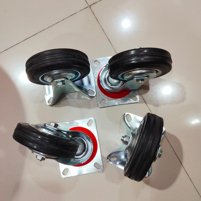 Paket roda karet 4" hitam 2pcs Hidup 2pcs Mati Roda troli set 4in 4pcs