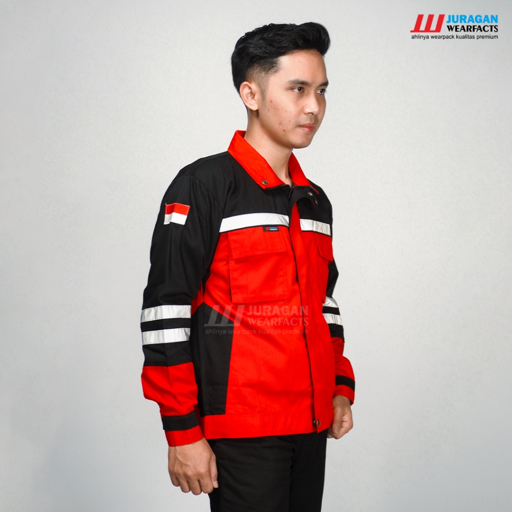 FLASH SALE Safety Semi Jaket Warna Hitam Kombinasi Merah
