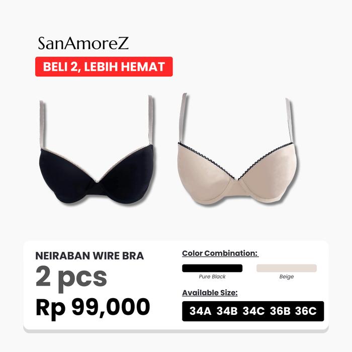 SANAMOREZ (2 PCS) BRA KAWAT | SIZE 34A - 36C | SOFT FOAM | NEIRABAN WIRE BRA BH WANITA BEHA KAWAT BUSA TIPIS PAKAIAN DAL