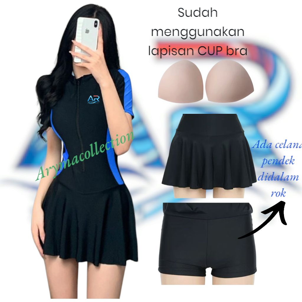 AR SPORT baju renang rok wanita dewasa baju diving rok wanita DENGAN LAPISAN CUP BRA