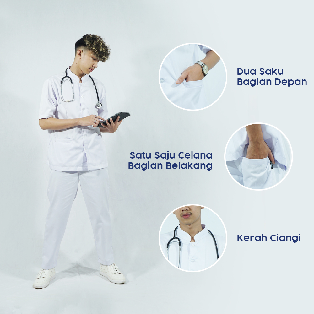 FLASH SALE Baju Perawat Putih Set Klinik Rumah Sakit Pria Lengan PanjangPendek