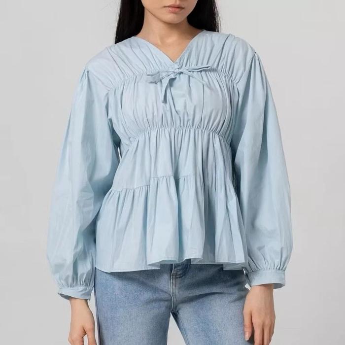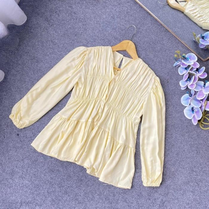 MIREYA BLOUSE KERUT DADA LENGAN PANJANG BAHAN RAYON ATASAN WANITA TERBARU BAJU MUSLIM - MIREYA BABYBLUE, L