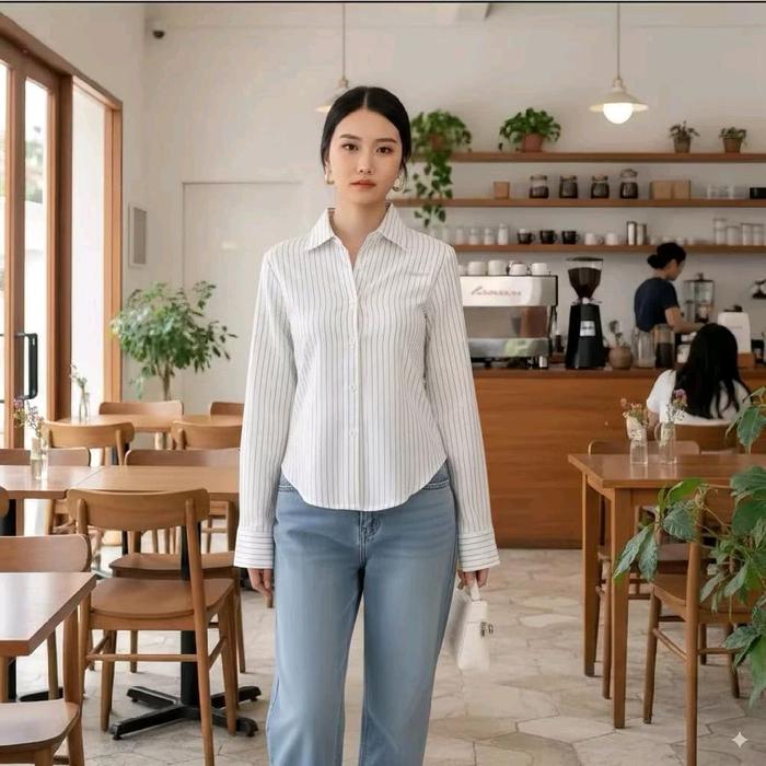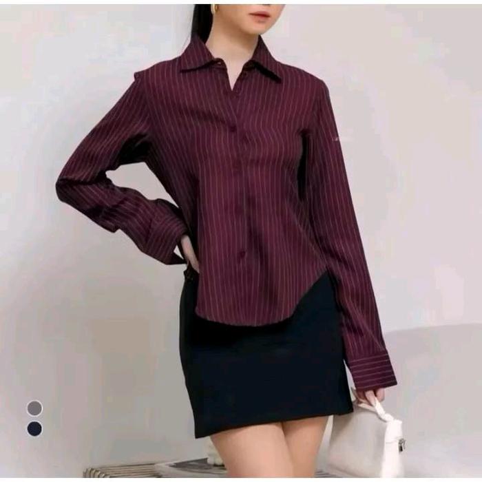 LUNA STRIPE KEMEJA FITTED BODY PREMIUM - KEMEJA FITTED STRIPE SALUR BASIC CASUAL BAHAN SEMIWOLL ANTI KUSUT - BROWN, FIT