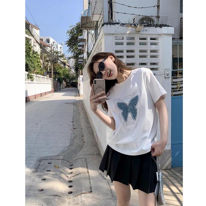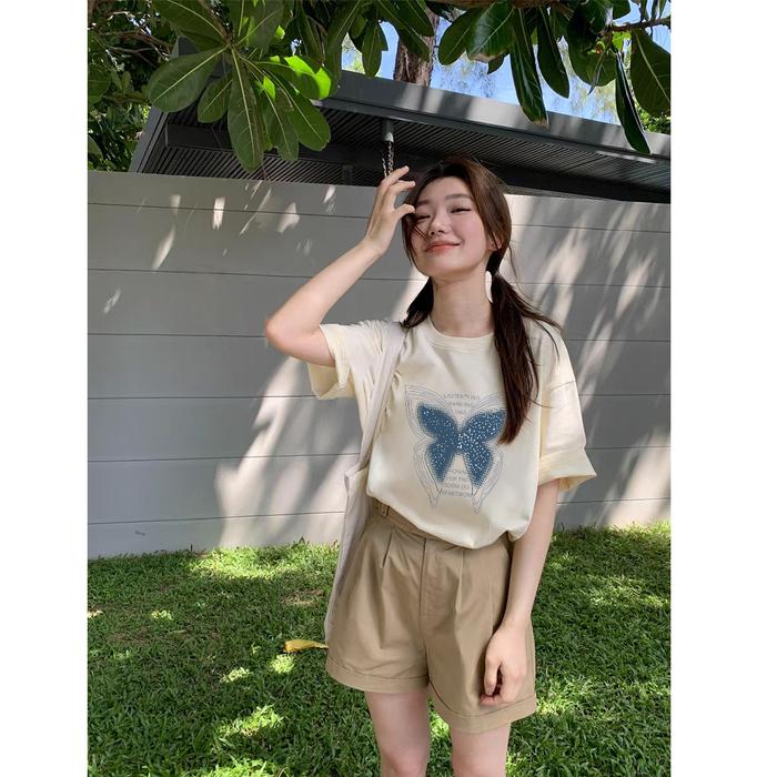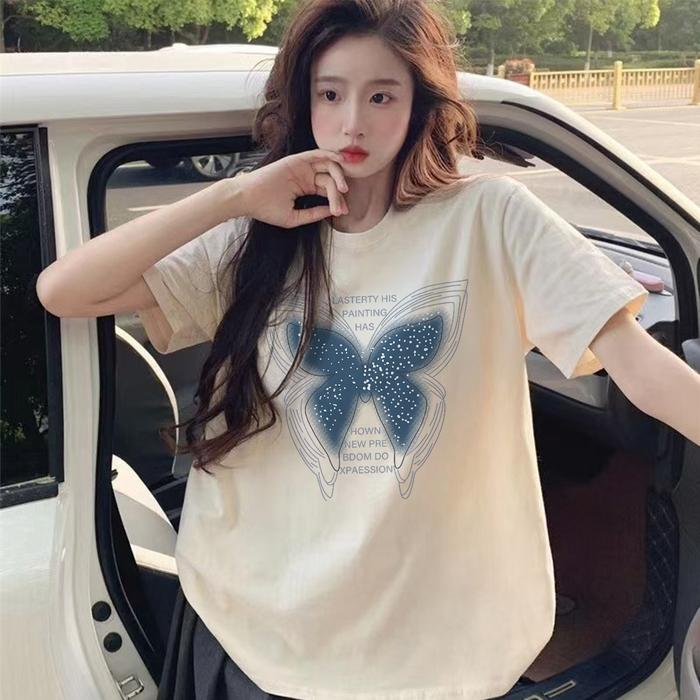 GF KAOS WANITA BOXY BUTTERFLY MOTIF PRINTED SLIM FIT T SHIRT PRIA OVERSIZE BASIC UNISEX TEE KATUN COMBED BAHAN NYAMAN BA