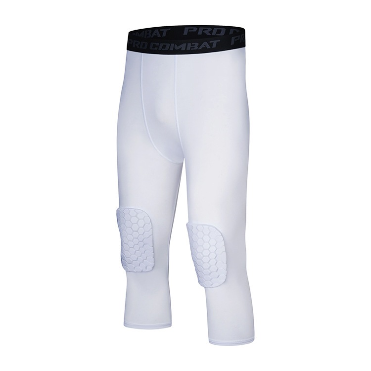 Celana Pro Combat Legging With Kneepad 34 Pelindung Lutut Manset Baselayer Olahraga Basket Running Pria Kaki Black White Hitam Putih