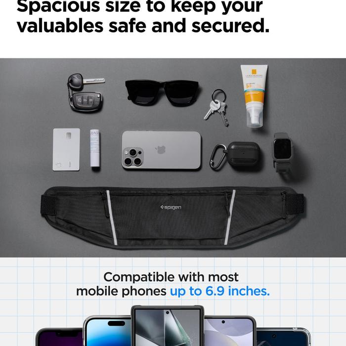 WAIST BAG RUNNING SPIGEN DYNAMIC SHIELD WATER RESIST TAS PINGGANG JOGGING PHONE HOLDER HP HANDPHONE OLAHRAGA SPORT WAISTPACK GYM STORAGE OUTDOOR PRIA WANITA