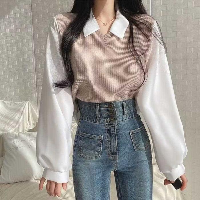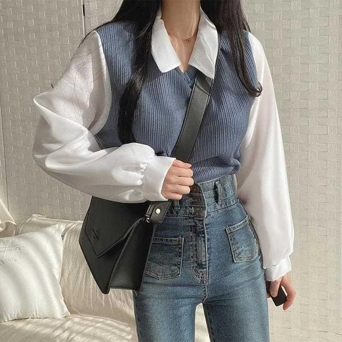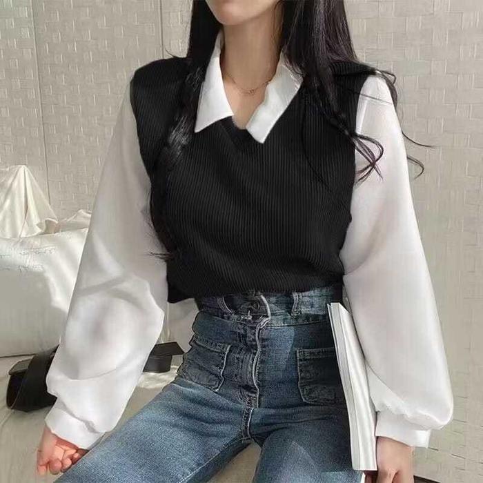 ATASAN WANITA ADELLA KOMBI SHIRT NECK - MAROON