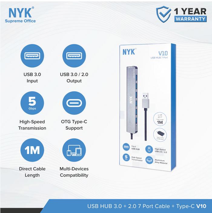 USB HUB 3.0 NYK PORT 7 CABLE 1M OTG TYPE C V10 - s1lvewrr