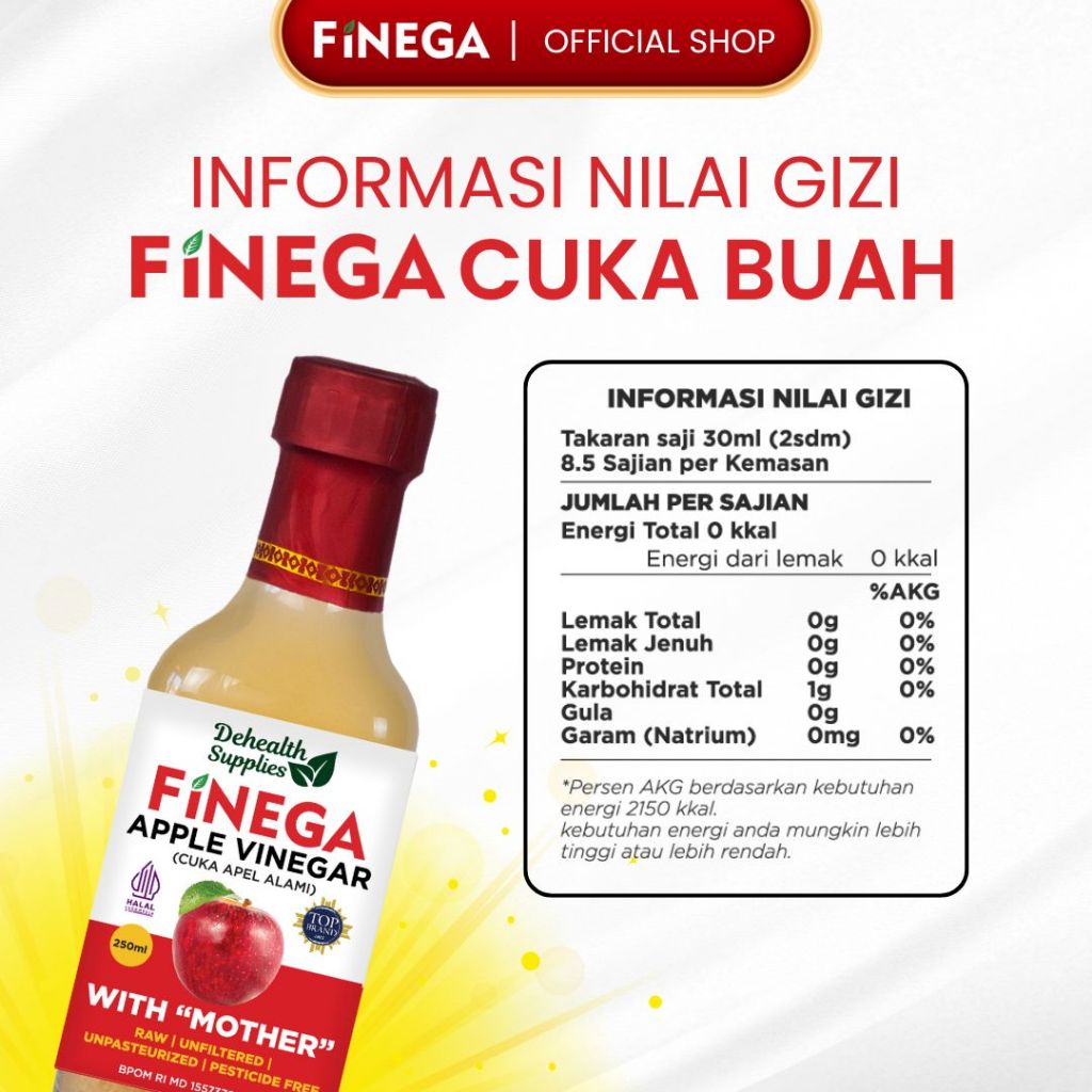 Dehealth Supplies FINEGA CUKA APEL 250ml ( Botol kaca)