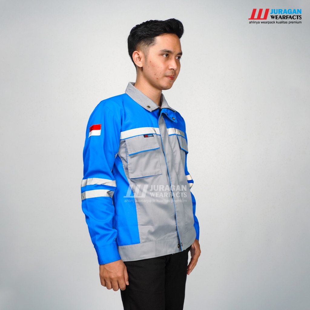 FLASH SALE Atasan Model Semi jaket Warna Abu abu Kombinasi Biru Benhur