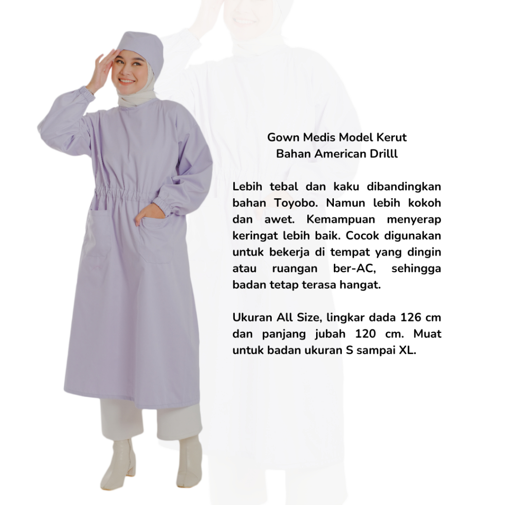 FLASH SALE Gown Medis Gaun APD Model Kerut Jubah Operasi Bahan American Drill