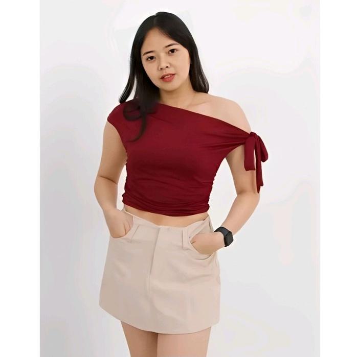 LFVALENTINA T0P BAJU ATASAN WANITA SHOULDER STREET ELEGANT STEAYLE & STYLISH DENGAN DESAIN OFF-SHOULDER - MERAH, M