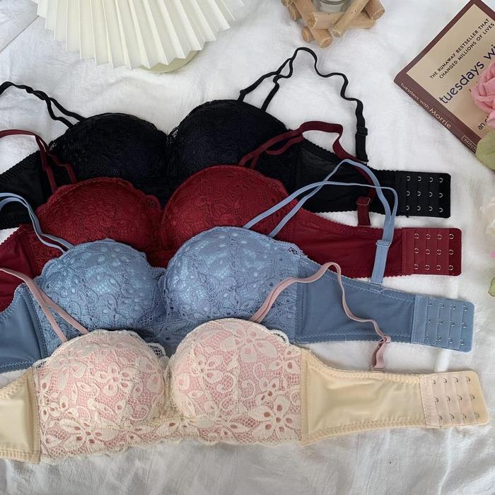 ISTANA - 9033 BRA FASHION WANITA BRA PUSH UP TANPA KAWAT MOTIF RENDA BUNGA BH ELASTIS BRA CUP - BLACK, 34/75B