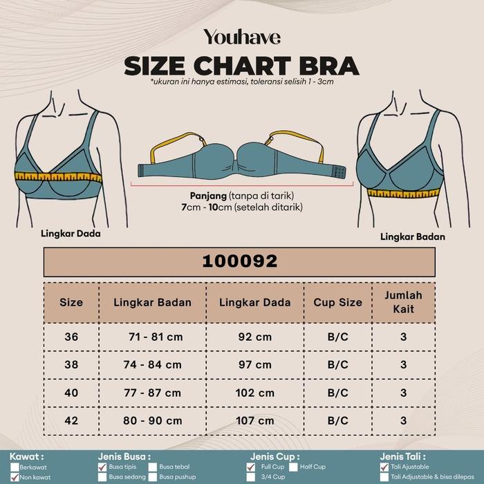 YOUHAVE PAKET HEMAT 2PCS BRA GRATIS 2PCS BRA BUSA TIPIS TANPA KAWAT KATUN MIX CUP B C KAIT 3 BH 100092 - RANDOM, 36
