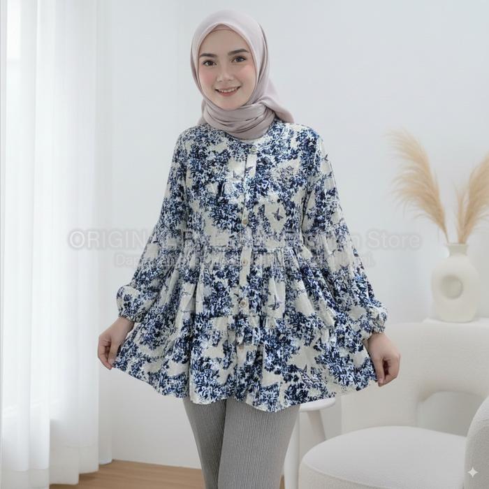 AIDA BLOUSE WANITA FLORAL BABYDOLL ATASAN BLOUSE WANITA FIT L XL - LAVEN BLACK, STANDART