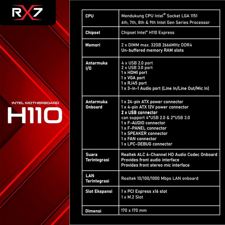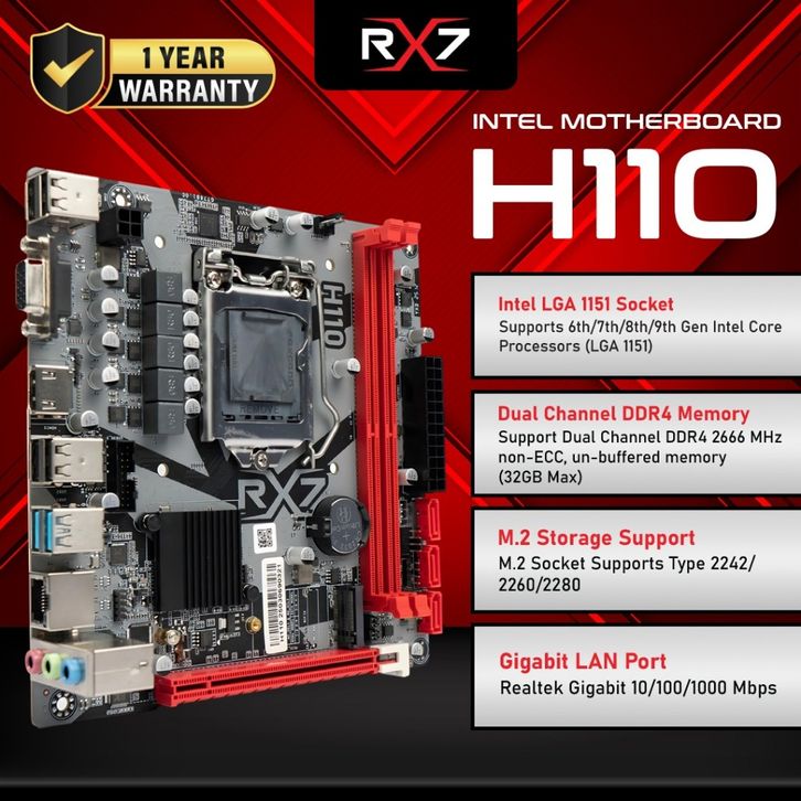 MOTHERBOARD RX7 H110 Socket LGA 1151 DDR4 INTEL SUPPORT NVME