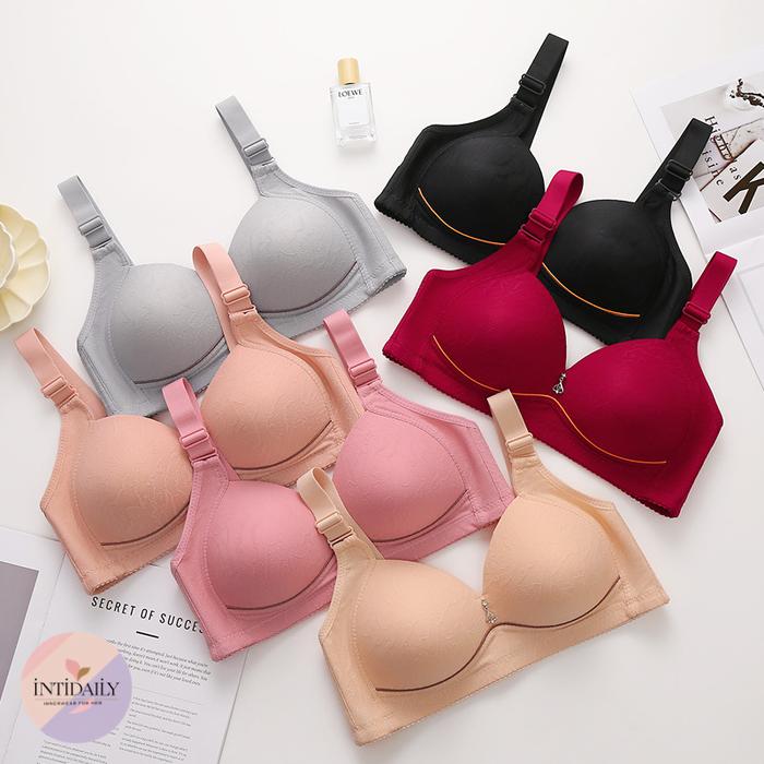 BRA JUMBO CUP BESAR BUSA TIPIS LEMBUT BH WANITA MOTIF POLOS TALI TEBAL NYAMAN - HITAM, 36