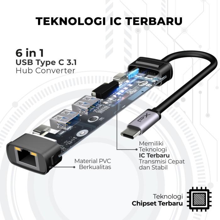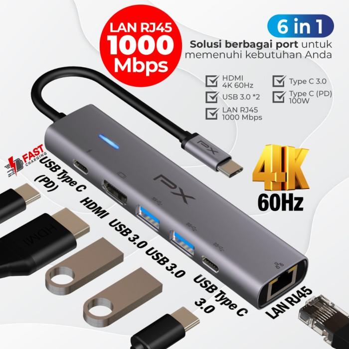 USB HUB CONVERTER TYPE C HUB ADAPTER LAPTOP MACBOOK IPAD TABLET TYPE C 3.1 TO HDMI 4K 60HZ USB 3.0 LAN RJ45 1000MBPS TYPE C POWER DELIVERY 100W 6 PORT 6 IN 1 PX UCH4K606