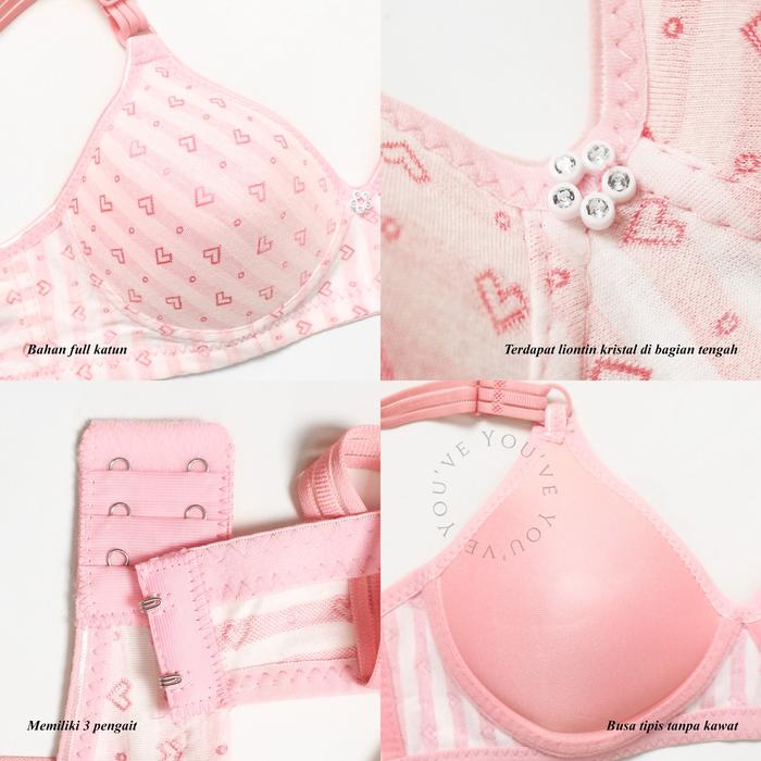 YOU’VE (YOUHAVE) BH WANITA BRA WANITA MOTIF HATI BUSA TIPIS TANPA KAWAT 100095 - CREAM, 36