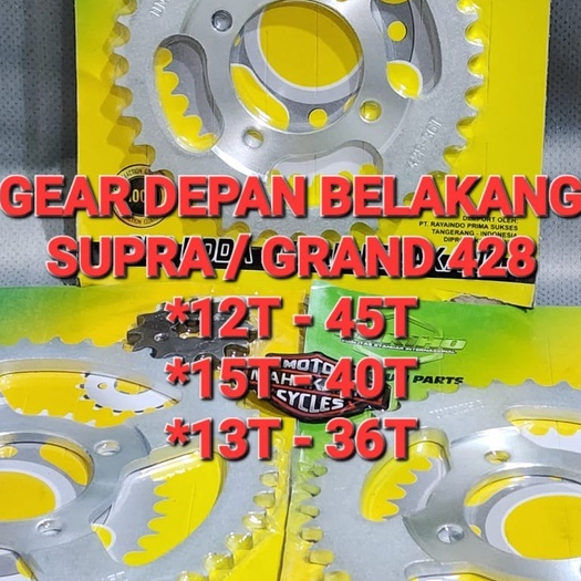 GIR SET GRAND DEPAN BELAKANG SUPRA X 428 36T 40T 45T GEAR PRESS HONDA WIN