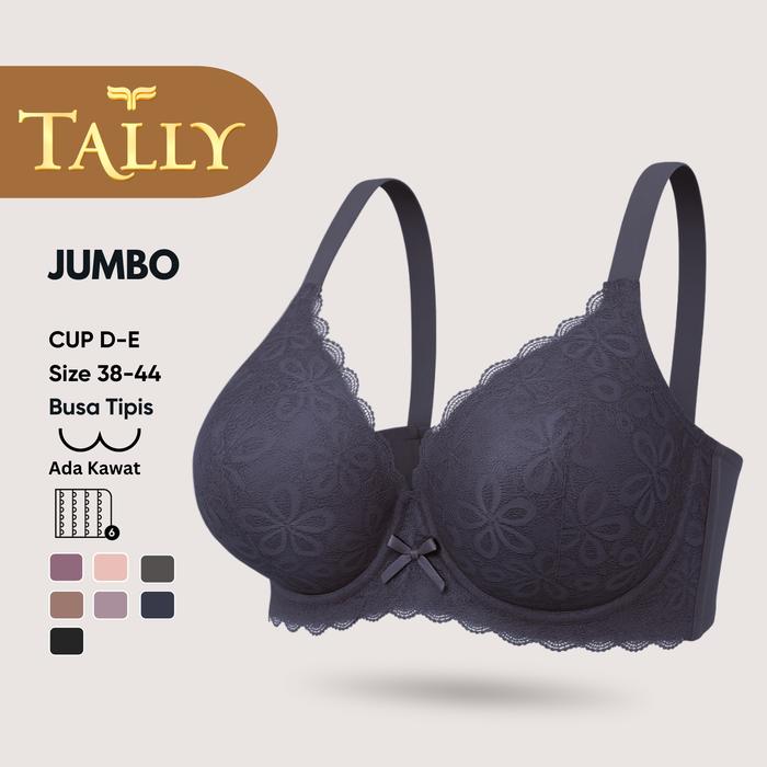 TALLY BRA ADA KAWAT BUSA TIPIS BAHAN RENDA KATUN CUP D - E KAIT 6 BRA WANITA JUMBO BH 7391 / 7392 SARWENDAH - COKLAT TUA