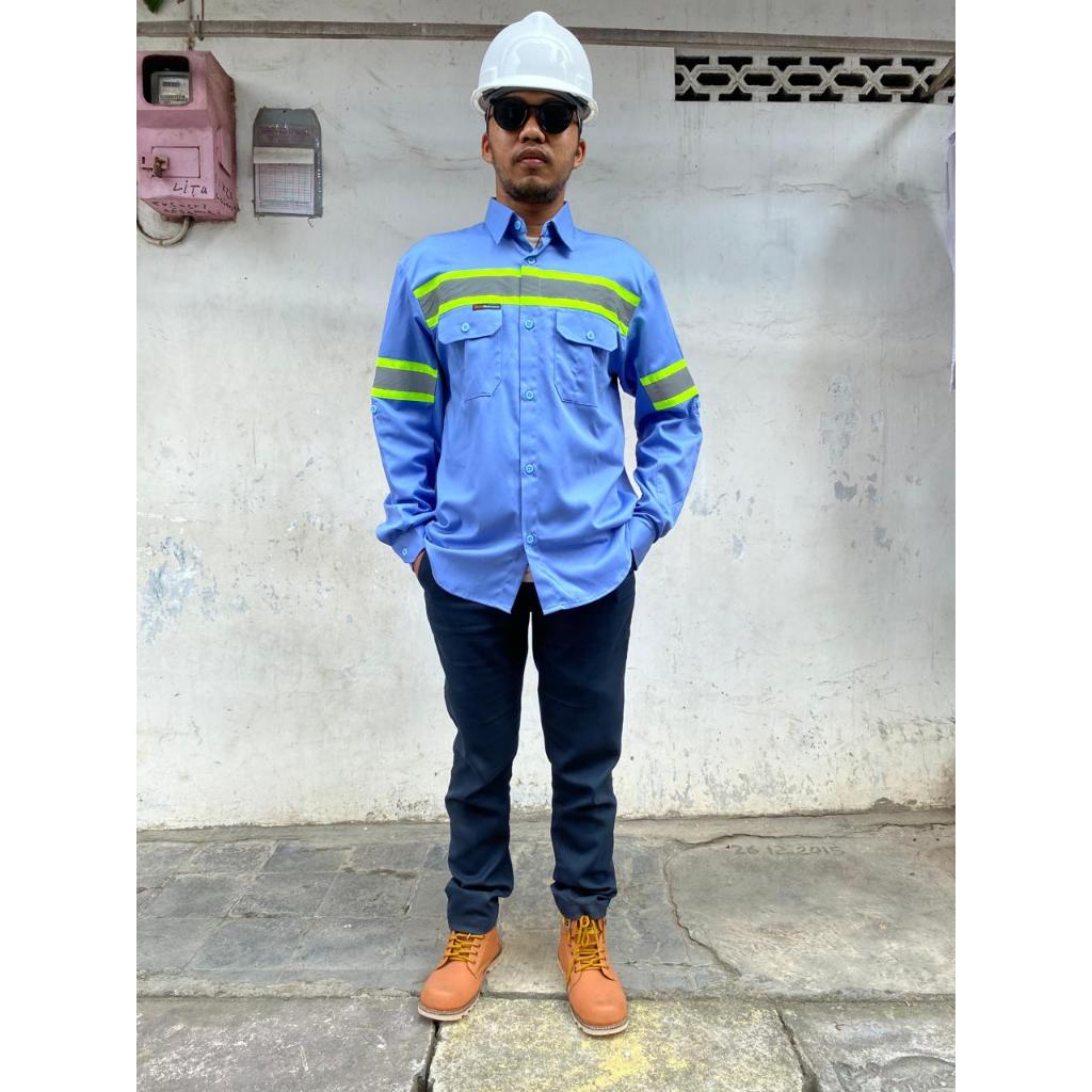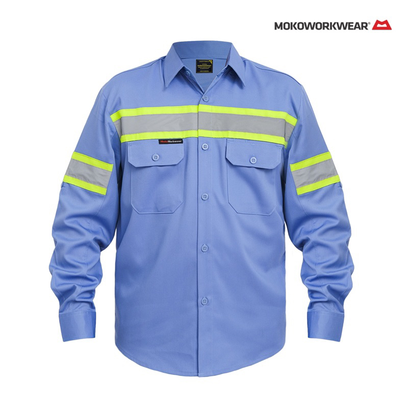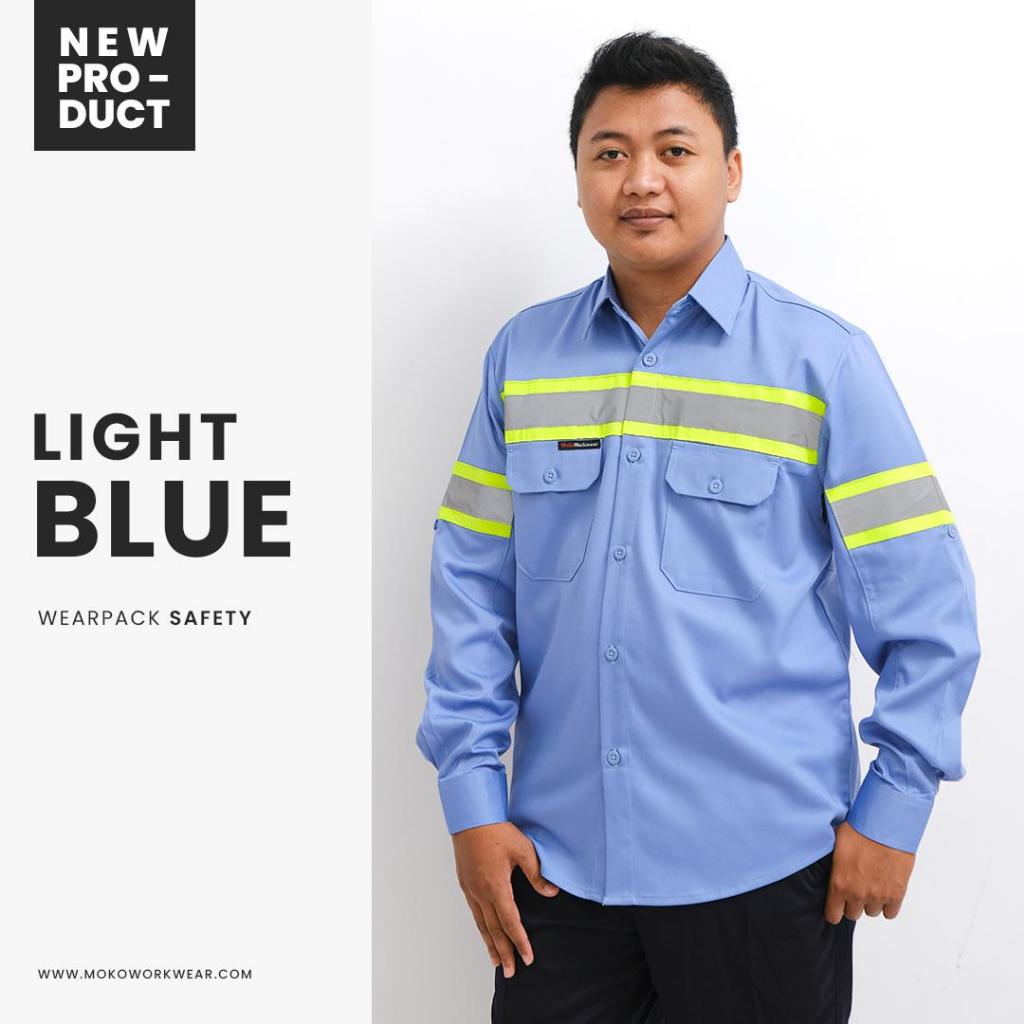 FLASH SALE MokoWorkwear Baju Safety Kombinasi Scotlite Biru Muda